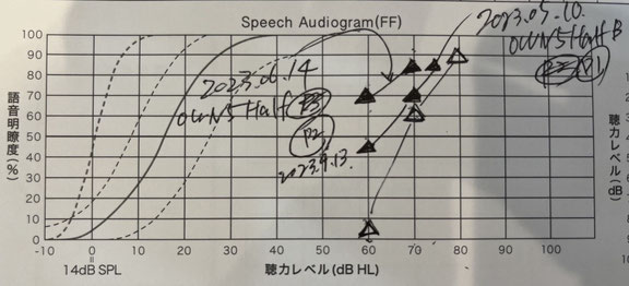 ▲が補聴器をつけた場合で、一番上の▲が最良状態です。